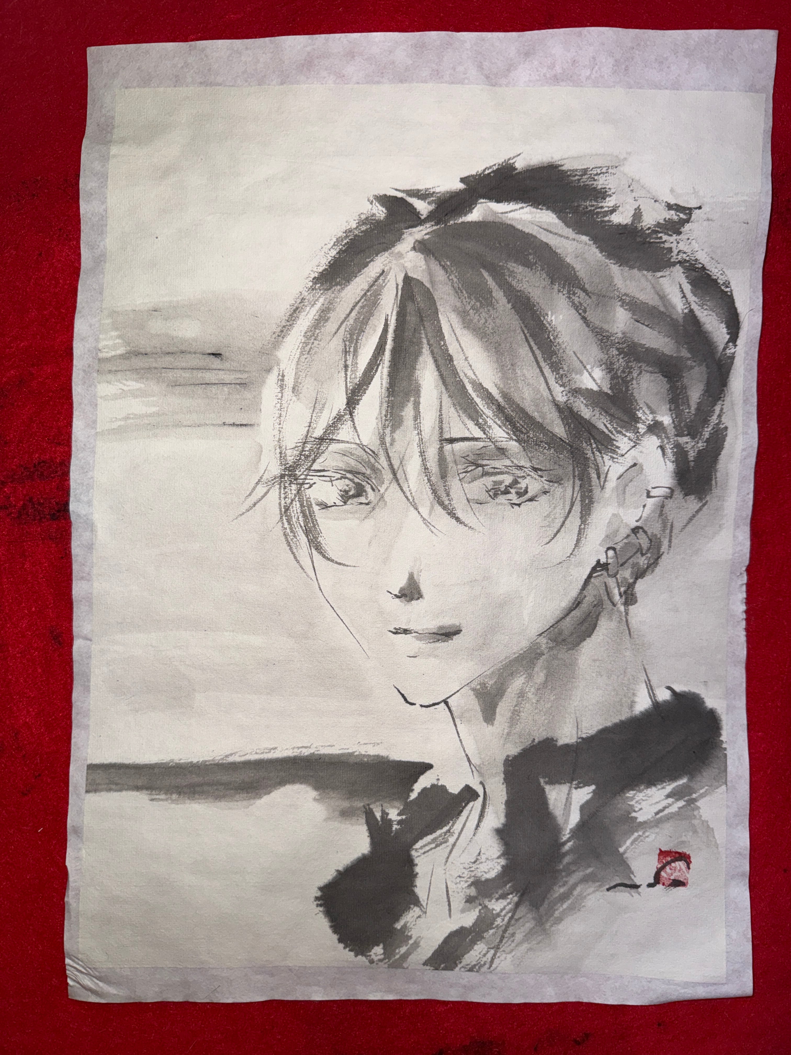 裏打ち済み。 B4額に飾っていただけます。 #美人画 #墨絵 #水墨画 二次創作物につき材料費のみでのお送りとなります。
