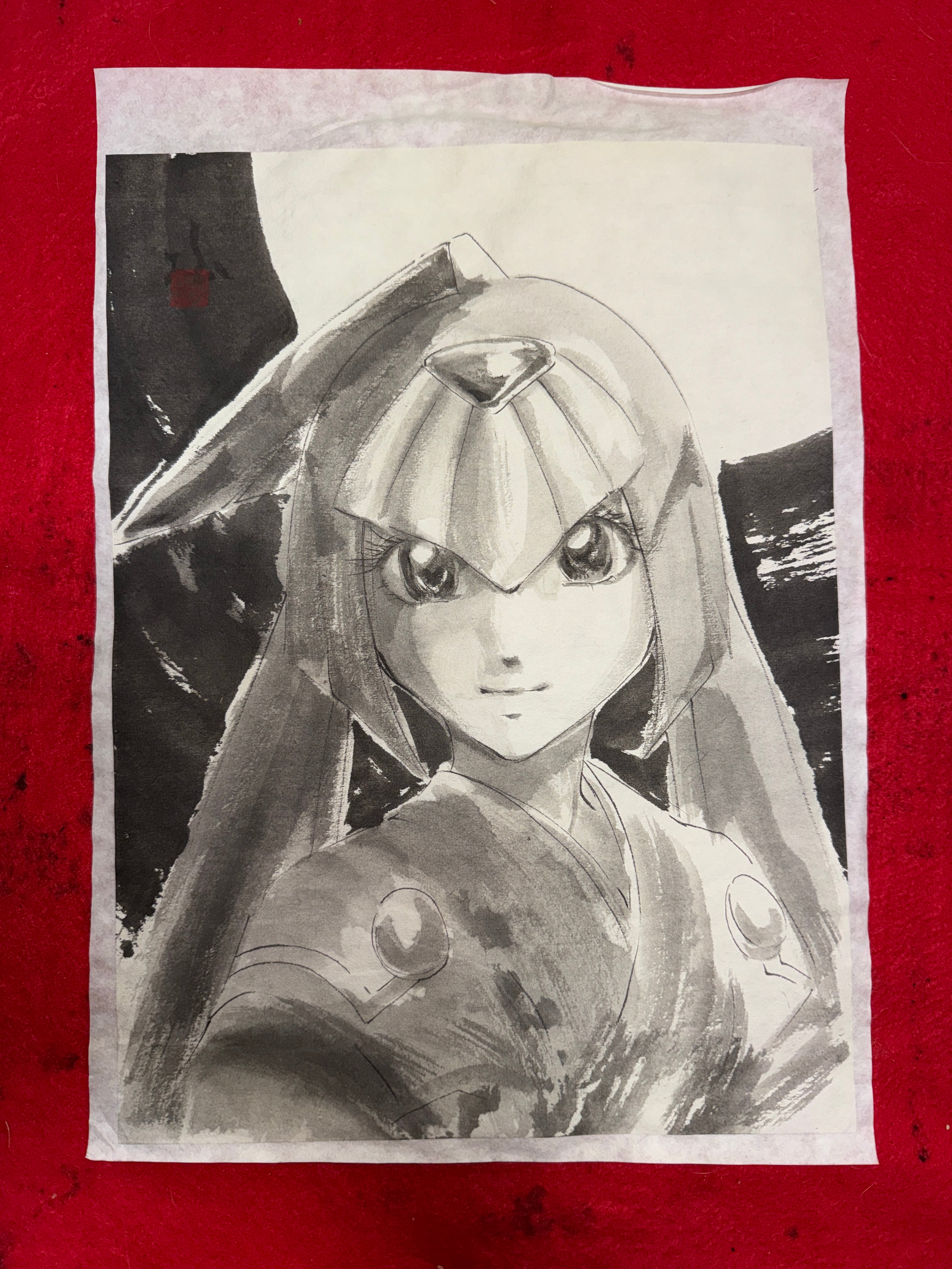 裏打ち済み。 B4額に飾っていただけます。 #美人画 #墨絵 #水墨画 二次創作物につき材料費のみでのお送りとなります。