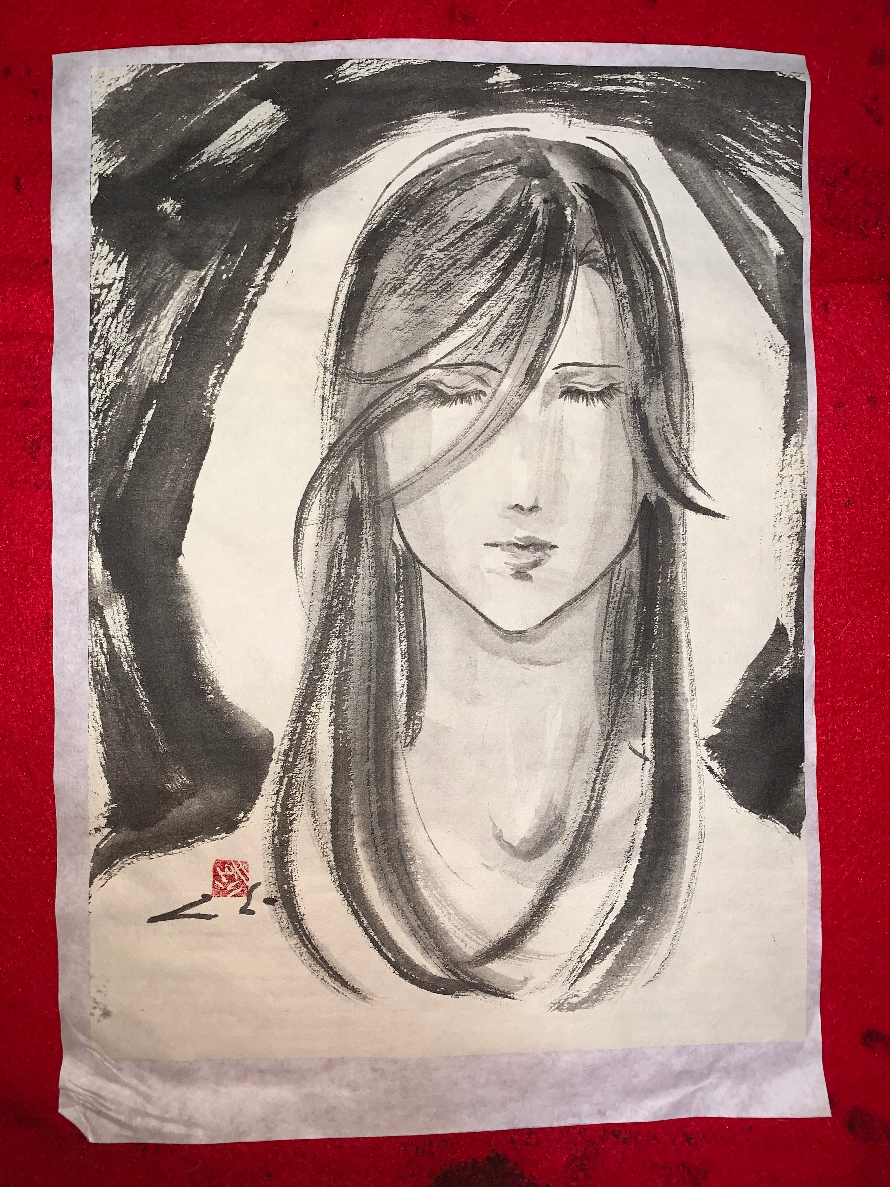 墨絵 水墨画 美人画