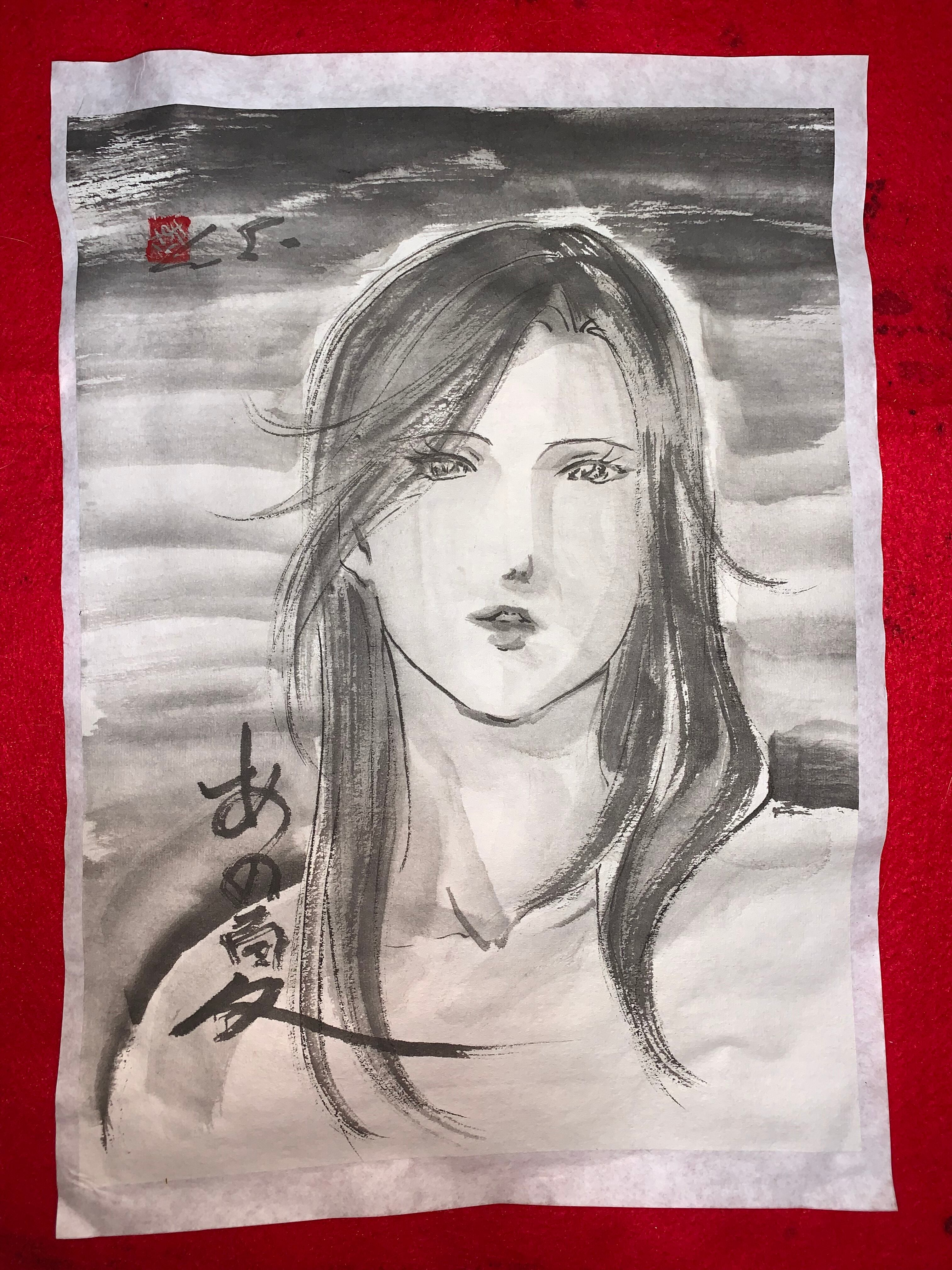 墨絵 水墨画 美人画 原画 「あの夏」