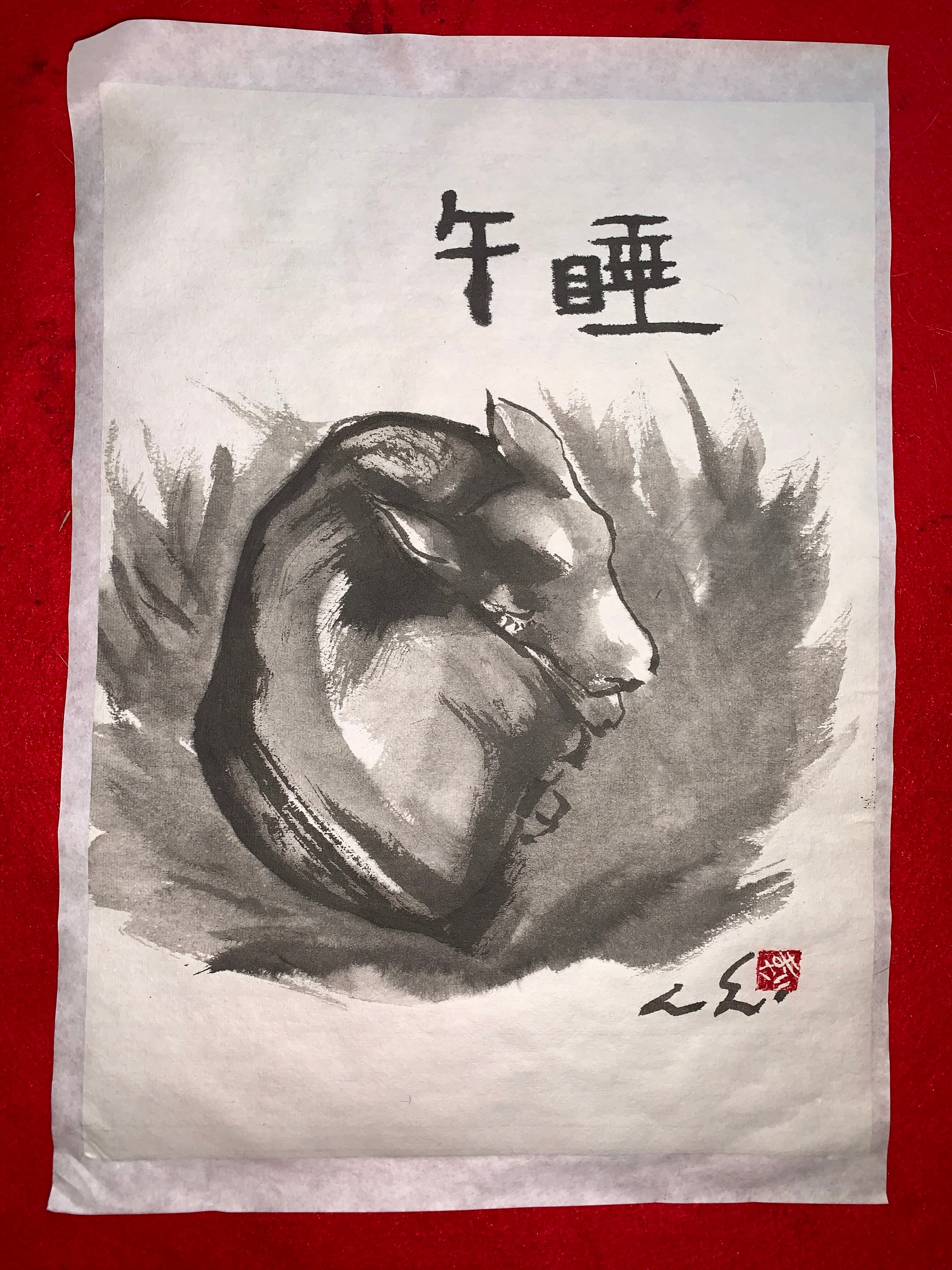 「午睡」肉筆画 墨絵 水墨画 原画 現品限り