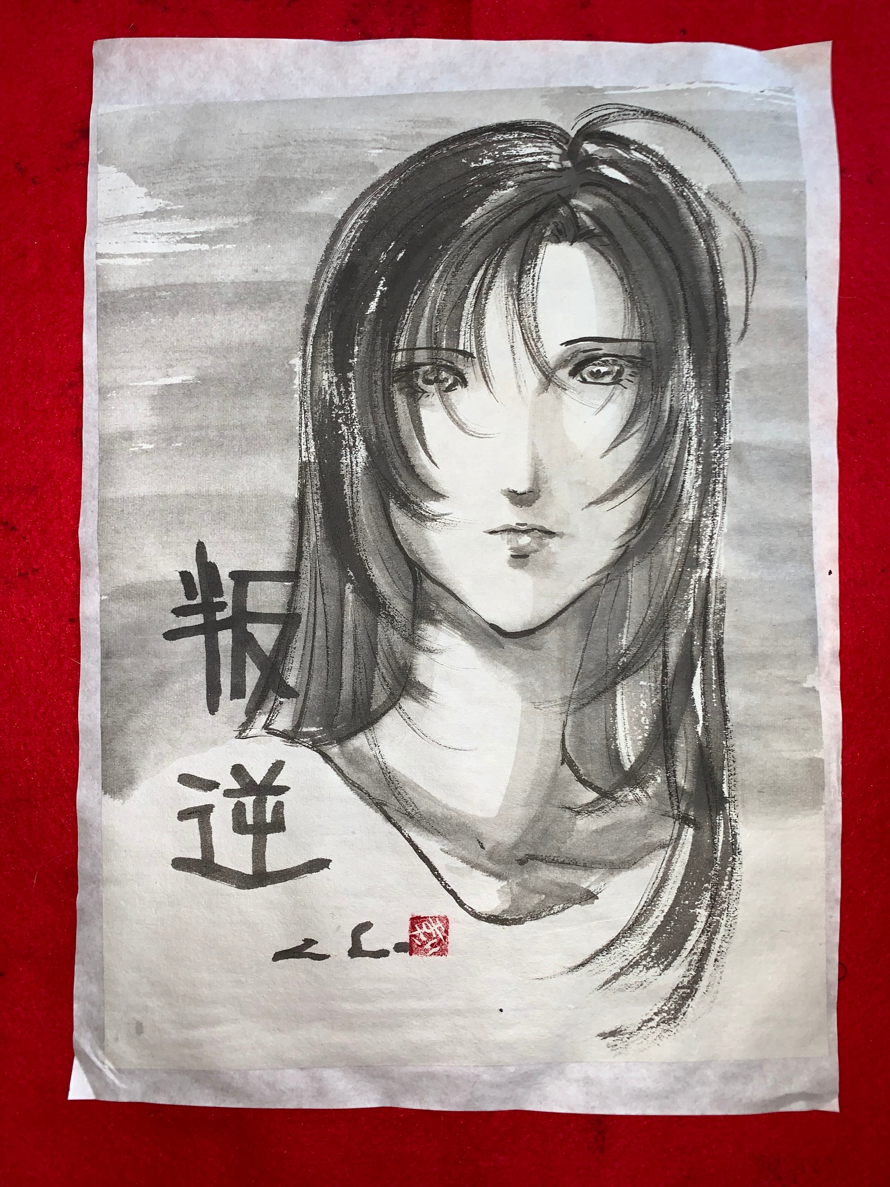 「叛逆」美人画 肉筆画 墨絵 水墨画 原画 現品限り