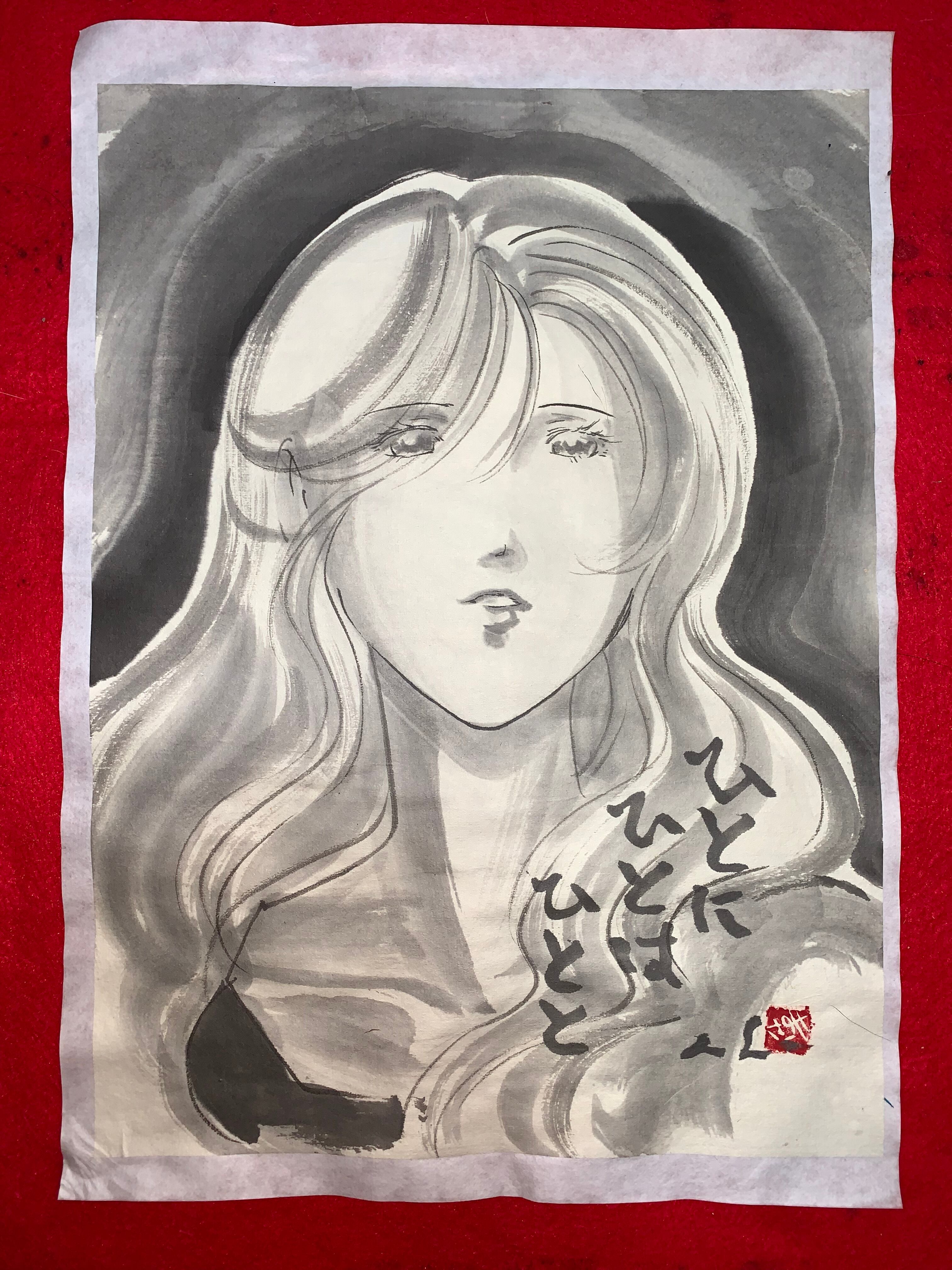 「ひとは」 美人画 肉筆画 墨絵 水墨画 原画 現品限り