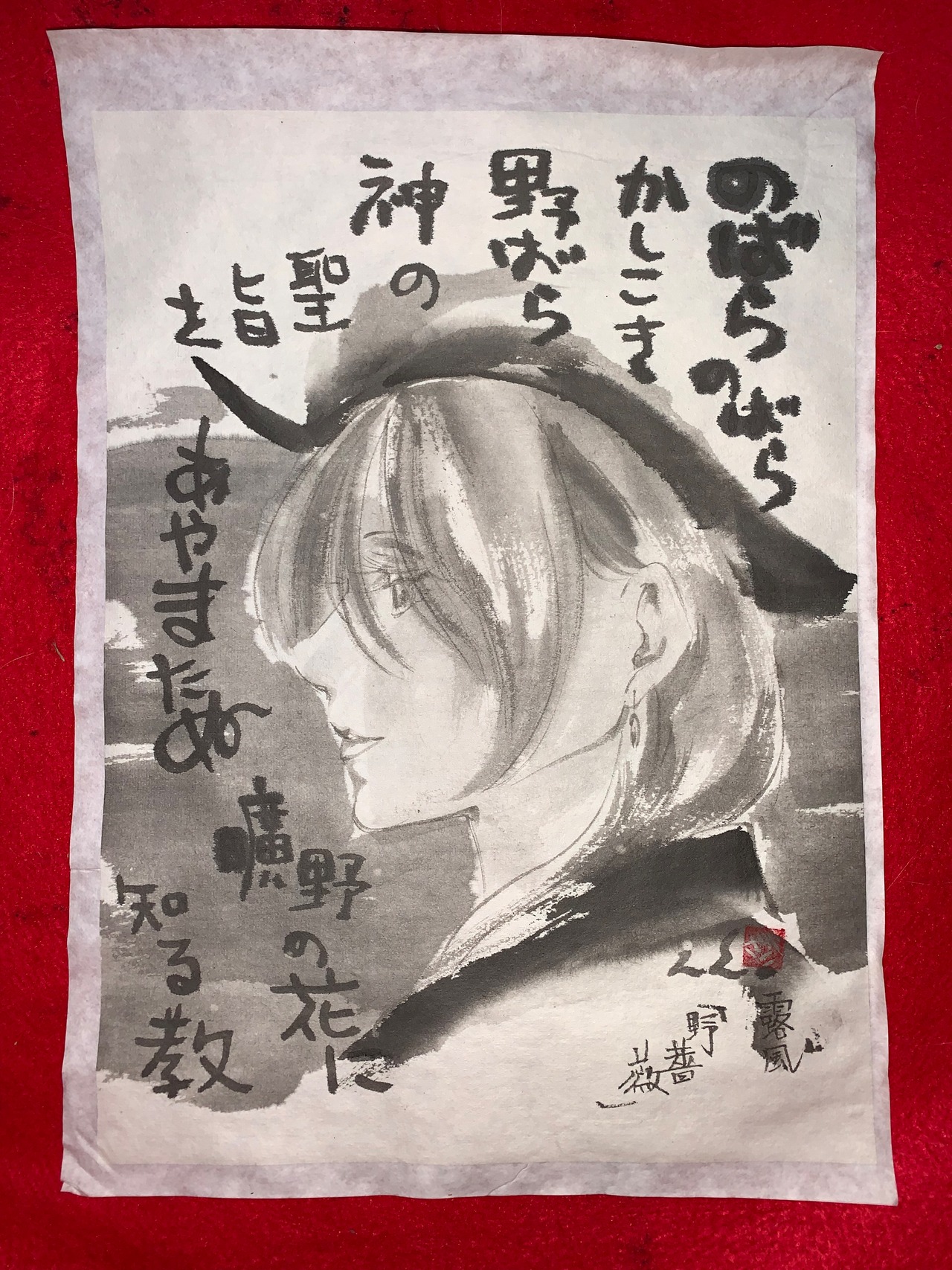 のばら 美人画 肉筆画 墨絵 水墨画 原画 現品限り