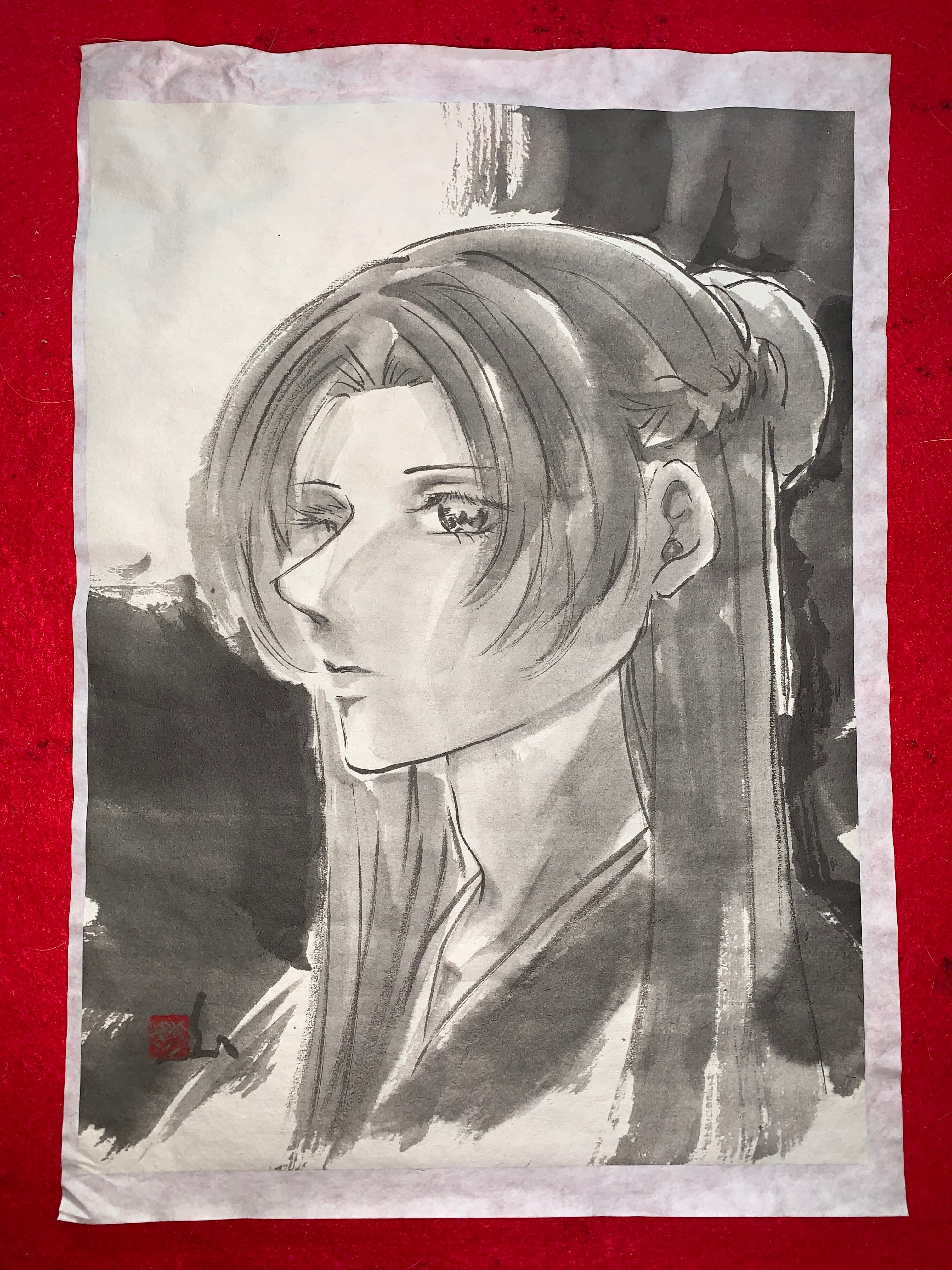 裏打ち済み。 B4額に飾っていただけます。 #美人画 #墨絵 #水墨画 二次創作物につき材料費のみでの贈答となります。
