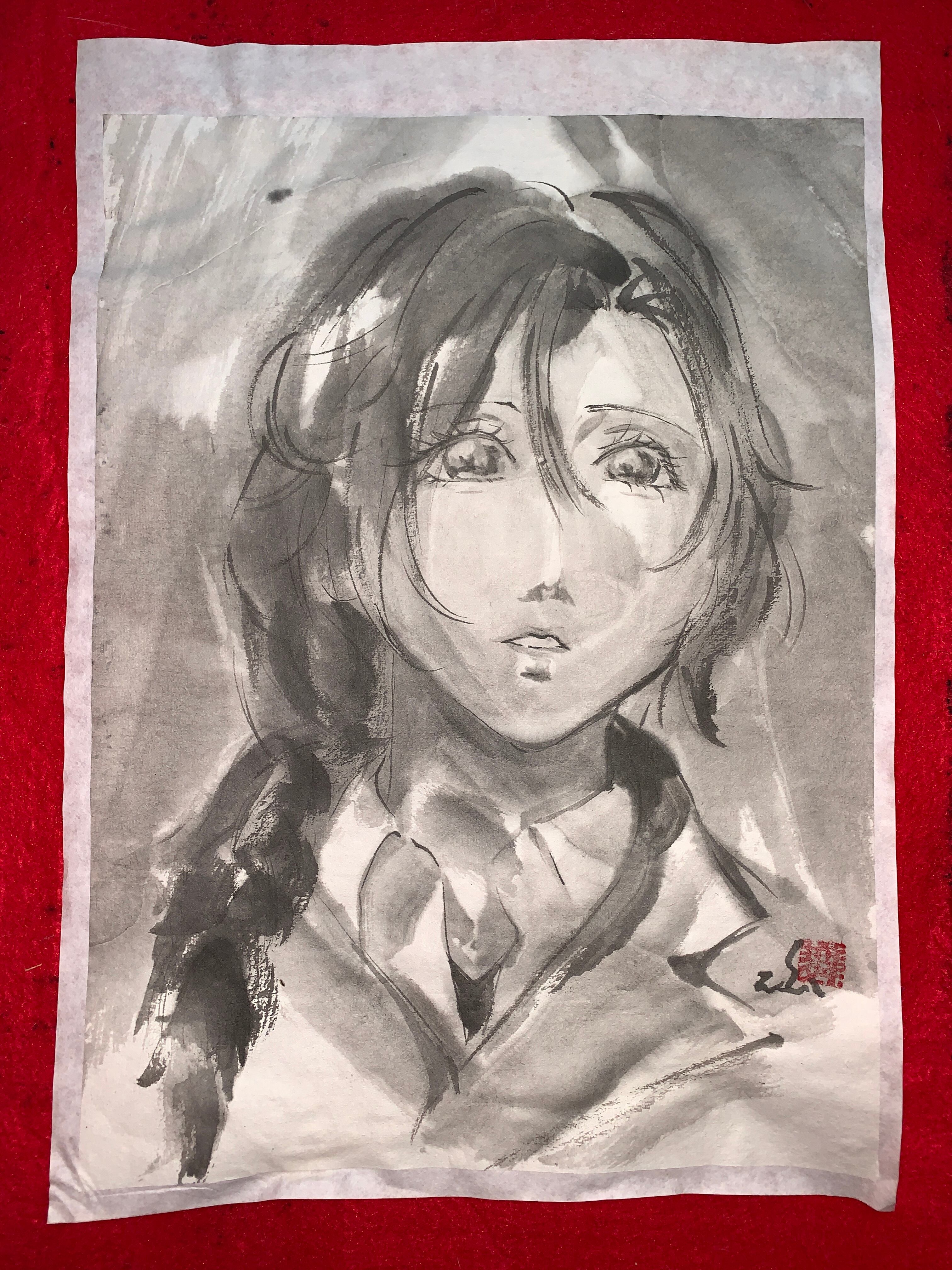 裏打ち済み。 B4額に飾っていただけます。 #美人画 #墨絵 #水墨画 二次創作物につき材料費のみでの贈答となります。