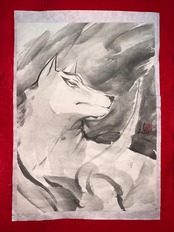 肉筆画 墨絵 水墨画 原画 現品限り 大神 アマ公 | まさい屋
