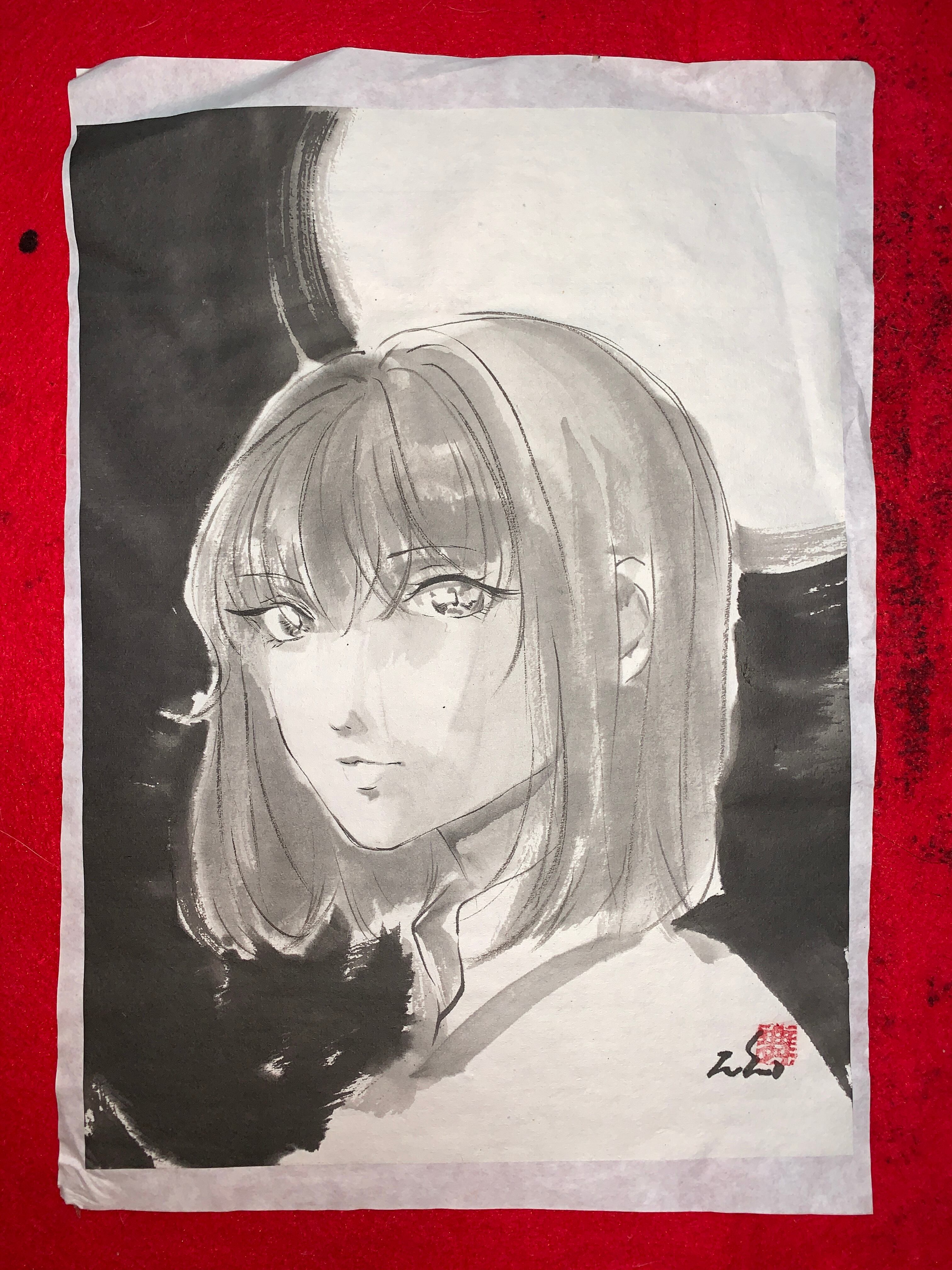 裏打ち済み。 B4額に飾っていただけます。 #美人画 #墨絵 #水墨画 二次創作物につき材料費のみでの贈答となります。